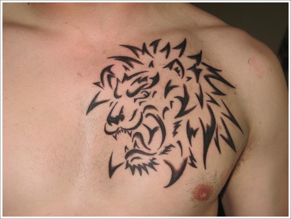 Roaring Lion Tattoo on Shoulder. Roaring Lion Tattoo Design. Tribal Lion Tattoo Design on Chest.